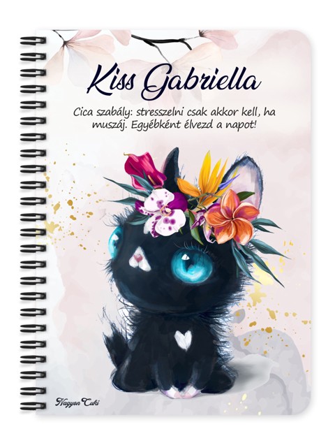 Névvel & Idézettel Kérhető Tündéri fekete cicus Füzet | Egyedi Ajándék Macska Rajongóknak | nagyoncuki.hu Képzeld el, ahogy egy rohanó nap közepén egy pillanatra megállsz, és a kezedbe veszed ezt a füzetet. A borítójáról egy cica néz vissza rád békés nyugalommal, emlékeztetve: a legnagyobb rohanásban is van helye a csendes, doromboló pillanatoknak. Ez a cica a belső béke, a stresszoldás és a hűséges, csendes társaság szimbóluma. Nem követel, csak csendben van veled, és a puszta jelenlétével is nyugalmat áraszt. Arra inspirál, hogy a legfontosabb gondolataidat egy békés, rendezett helyen gyűjtsd össze, távol a világ zajától. Tökéletes választás naplóíráshoz, versekhez, vagy egyszerűen csak a gondolatok rendszerezésére! :) A "Cukiságok" kollekció ezen darabját is mi magunk, a nagyoncuki.hu csapata terveztük, így biztos lehetsz benne, hogy egy igazán egyedi, magyar dizájnnal készült ajándékkal leped meg magadat vagy egy másik macskaimádót! Miért válaszd ezt a személyre szabható a tündéri cica mintás füzetet? Teljesen Személyre Szabható: Tedd 100%-ban egyedivé! A borítóra nemcsak a nevedet kérheted, de a mintán szereplő alap idézetet is lecserélheted a saját, kedvenc motivációs üzenetedre vagy egy személyes gondolatra. Nyugtató és imádnivaló Dizájn: A cica egy univerzális kedvenc. Ez a letisztult, békés grafika garantáltan segít lelassulni és mosolyt csal az arcokra. Praktikus és Minőségi: A füzet két méretben (A5 és A6) elérhető. A strapabíró spirálkötés és a 60 minőségi, vonalas lap (120 oldal) gondoskodik a kényelmes használatról. Extra Meglepetés: Minden füzethez egy ajándék post-it szett is jár, hogy a legfontosabb gondolatok mindig szem előtt lehessenek. Tökéletes Ajándék Cicásoknak: Ideális ajándék születésnapra, névnapra, karácsonyra, vagy csak úgy, hogy meglepd a kedvenc macskás barátodat! Kinek ideális ajándék ez a cuki cica mintás füzet? Minden macskamániásnak: Akiknek az élete a cicák körül forog. Akiknek szükségük van egy kis stresszoldásra a mindennapokban. Gazdiknak: Akik büszkén viselnék a cicájuk nevét egy ilyen cuki füzeten. Kollégáknak, barátoknak: Akiknek szeretnél egy vicces és személyes ajándékot adni, ami feldobja a munkanapokat. Bárkinek, aki értékeli a cuki állatokat és egy különleges ajándékot keres. Termékjellemzők: Méretek: Választható A5 (kb. 13,5 cm x 21 cm) vagy A6 (kb. 10,5 cm x 14,5 cm) Borító: Személyre szabható névvel és/vagy egyedi idézettel, matt felülettel Belső: Kb. 60 csíkos lap (120 oldal), tetején "memo" és "Subject" segédlettel Kötés: Praktikus és tartós fekete fémspirál Extra: Ajándék post-it szett a füzet elején Egyedi felirattal is kérhető: Ne felejtsd el megadni a kért nevet és/vagy az egyedi idézetet a megjegyzés rovatban rendeléskor! Rendeld meg most ezt a teljesen személyre szabható, egyedi cicafüzetet, és indítsd a napot egy dorombolásnyi jókedvvel...mert mindenkinek jár egy kis cukiság. Ha elvarázsolt ez a tündéri dizájn, és tetszenek a személyre szabható ajándék ötleteink, nézd meg a többi aranyos figurát is a Cukiságok kollekció a nagyoncuki.hu-n! Fedezz fel még több egyedi ajándékot állatbarátoknak és más, vidám témájú csodát!