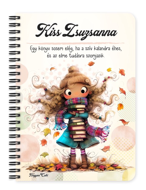 Névvel Kérhető - Cuki őszi könyvmoly lányos Füzet | Egyedi Ajándék Nőknek & Személyes Napló | nagyoncuki.hu Képzeld el azt a mosolyt és inspirációt a megajándékozott arcán, amikor egy olyan füzetet tart a kezében, amely nemcsak a legféltettebb gondolatait, álmait vagy fontos jegyzeteit őrzi, hanem az őszi meghittség, a furik báj és az olvasás iránti szeretetét is tükrözi! Ez a különleges, személyre szabható, egyedi tervezésű őszi olvasó lányos füzet a könnyed elegancia, a játékos furcsaság és a nyugodt, elmélyült pillanatok bájos megtestesítője. Egy apró, szeretetteljes gesztus, amely a mindennapokat is fénnyel tölti meg, és minden lapon új ötletekre sarkall. Kiváló ajándék ötlet nőknek és mindenkinek, aki értékeli a személyes és lélekemelő meglepetéseket. Ez az olvasós füzet az őszi békét, a képzelet szabadságát és a könyvek világának örömét ötvözi egy aranyos, őszi mintás, bájosan zilált olvasó lány figurájában. Ahogy a furik olvasó lány elmerül a könyvében, nyugalmat és pozitív energiákat sugároz, és arra ösztönöz, hogy te is elmerülj a saját világodban. Akár naplóként, jegyzetfüzetként, receptkönyvként vagy ötletfüzetként használod, ez a furik mintás füzet tökéletes társ lesz minden kreatív és meditatív pillanatban. A dizájn kedves és egyedi, tökéletes ajándék ötlet azoknak, akik szeretik a különleges és szívhez szóló meglepetéseket, és imádják a személyes ajándékokat :)