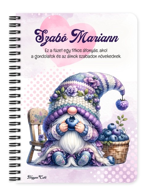 Személyre szabható - Édes Áfonyás manó Füzet mintás Füzet | Egyedi Ajándék Nőknek & Személyes Napló | nagyoncuki.hu Képzeld el azt a mosolyt a megajándékozott arcán, amikor egy olyan füzetet tart a kezében, ami a legféltettebb gondolatait, álmait vagy fontos jegyzeteit őrzi. Ez a különleges, személyre szabható, egyedi tervezésű áfonyás manó füzet a könnyed elegancia, a játékos cukiság és a nyugodt, elmélyült pillanatok bájos megtestesítője. Egy apró, szeretetteljes gesztus, amely a mindennapokat is fénnyel tölti meg, és minden lapon új ötletekre sarkall. Kiváló ajándék ötlet nőknek és mindenkinek, aki értékeli a személyes és lélekemelő meglepetéseket. Akár naplóként, jegyzetfüzetként, receptkönyvként vagy ötletfüzetként használod, ez a manós mintás füzet tökéletes társ lesz minden kreatív és meditatív pillanatban. A dizájn kedves és egyedi, tökéletes ajándék ötlet azoknak, akik szeretik a különleges és szívhez szóló meglepetéseket, és imádják a személyes ajándékokat. A "Cuki manók" kollekció ezen darabját is mi magunk, a nagyoncuki.hu csapata terveztük, így biztos lehetsz benne, hogy egy igazán egyedi és különleges manós ajándék darabbal leped meg szeretteidet vagy magadat. :) Miért válaszd ezt a cuki áfonyás manó mintás füzetet? Teljesen Személyre Szabható: Tedd igazán egyedivé! A borítóra nemcsak nevet kérhetsz, de a mintán szereplő alap idézetet is lecserélheted egy saját, személyes és kedves üzenetre. Stílusos és Témába Vágó Dizájn: A cuki áfonyás manó figura garantáltan mosolyt csal mindenki arcára, csak a kezében tartja. Praktikus és Minőségi: A füzet két méretben (A5 és A6) elérhető, így kiválaszthatod a neked legmegfelelőbbet. A strapabíró spirálkötés és a 60 minőségi, vonalas lap (120 oldal) gondoskodik a kényelmes használatról. Extra Meglepetés: Minden füzethez egy ajándék post-it szett is jár, hogy a legfontosabb jegyzetek mindig kéznél legyenek. Tökéletes ajándék nőknek és manórajongóknak: Legyen szó születésnapról, névnapról, karácsonyról, vagy csak egy kedves gesztusról, ez a saját névvel és idézettel kérhető áfonya manós füzet telitalálat. Kinek ideális ajándék ez a cuki áfonyás manó mintás füzet? Nőknek és lányoknak: Mindenkinek, aki a manók, a mesék és a bájos, tündéri stílus rajongója. A természet és az áfonya kedvelőinek: Akik értékelik a gyümölcsök és a természet inspirálta dizájnokat. A Cuki Manók kollekció gyűjtőinek: Akik szeretnék bővíteni a bájos figurák gyűjteményét, és szeretik az összhangot. Aki szereti a személyre szabott ajándékokat: Ha egyedi, névre szóló füzetet és a mesékhez kapcsolódó ajándékot keresel. Hol használhatod a Cuki áfonya mintás füzetet? Otthon: Naplózáshoz, receptek leírásához, ötleteléshez, vagy akár csak bevásárlólistákhoz. Tökéletes az éjjeliszekrényre, az íróasztalra vagy a kanapé mellé. Irodában/Suliban: Jegyzeteléshez, határidők rögzítéséhez, vagy inspiráló segítőként a kreatív munkához. Dobd fel a mindennapi feladatokat. Ajándékként: Önmagában is egy csodás meglepetés, de akár egy manós vagy természet témájú ajándékcsomag részeként is tökéletes választás egy manós bögrével vagy poháralátéttel kiegészítve. Termékjellemzők: Méretek: Választható A5 (kb. 13,5 cm x 21 cm) vagy A6 (kb. 10,5 cm x 14,5 cm) Borító: Személyre szabható névvel és/vagy egyedi idézettel, matt felülettel Belső: Kb. 60 csíkos lap (120 oldal), tetején "memo" és "Subject" segédlettel Kötés: Praktikus és tartós fekete fémspirál Extra: Ajándék post-it szett a füzet elején Egyedi felirattal is kérhető: Ne felejtsd el megadni a kért nevet és/vagy az egyedi idézetet. Rendeld meg most ezt a teljesen személyre szabható, egyedi áfonya manós füzetet, és vigyél egy kis extra mesebeli örömöt és inspirációt a mindennapokba... mert mindenkinek jár egy kis cukiság! Ha Ha elvarázsolt a cuki manók világa, és tetszenek a személyre szabható ajándék ötleteink, nézd meg a többi aranyos manós dizájnnal készült termékünket is a "Cuki Manó" Kollekcióban a nagyoncuki.hu-n! Fedezz fel még több egyedi ajándékot és más, vidám témájú csodát!