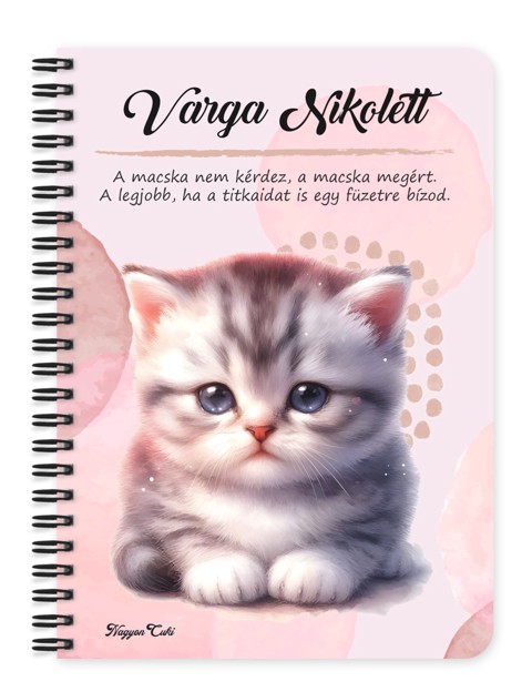 Indítsd a napot (vagy a tervezést) egy dorombolós mosollyal! Ez a névvel kérhető Cuki Cicás füzet nemcsak a titkos álmaidat, a leckédet vagy a teendőidet őrzi, hanem minden pillantással megmelengeti a szívedet. Egy kis szőrös boldogság a táskádban, ami mindig veled van! Tökéletes ajándék cicarajongóknak, vagy saját magadnak, ha szereted a pihe-puha társaságot.