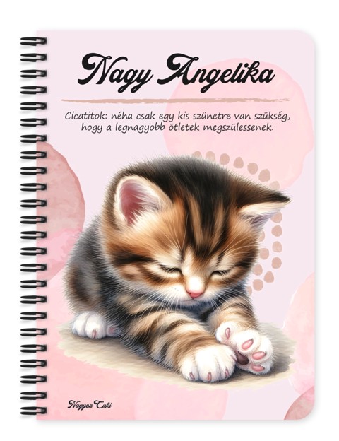 Indítsd a napot (vagy a tervezést) egy dorombolós mosollyal! Ez a névvel kérhető Cuki Cicás füzet nemcsak a titkos álmaidat, a leckédet vagy a teendőidet őrzi, hanem minden pillantással megmelengeti a szívedet. Egy kis szőrös boldogság a táskádban, ami mindig veled van! Tökéletes ajándék cicarajongóknak, vagy saját magadnak, ha szereted a pihe-puha társaságot.