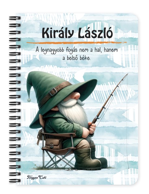Névvel & Idézettel Kérhető Türelmes horgász manó mintás Füzet | Legjobb ajándék Horgászoknak | nagyoncuki.hu Képzeld el a tökéletes csendet a tóparton, a víz felszínén táncoló fényeket és a nyugodt várakozás izgalmát. Ezt a békés hangulatot ragadja meg a füzet borítója, ahol egy kedves kis manó ül a stégen, horgászbottal a kezében, várva a nagy kapásra. Ő a türelem, a természet szeretete és a horgászat örömének apró, szakállas nagykövete. Ez a horgász manó a nyugodt vízparti reggelek és a büszke "ez mekkora volt!" történetek szimbóluma. Arra inspirál, hogy a legjobb fogásokat, a legsikeresebb csalikat, a bevált helyeket és a legkedvesebb horgászemlékeket egy olyan helyen gyűjtsd össze, ami méltó ehhez a csodás hobbihoz. Tökéletes választás fogási naplónak, a felszerelés listázásához, vagy egyszerűen csak a gondolatok rendezésére két kapás között. A "Cuki manók" kollekció ezen darabját is mi magunk, a nagyoncuki.hu csapata terveztük, így biztos lehetsz benne, hogy egy igazán egyedi, magyar dizájnnal készült ajándékkal leped meg magadat vagy egy számodra fontos, napsugaras lelkű személyt. :)