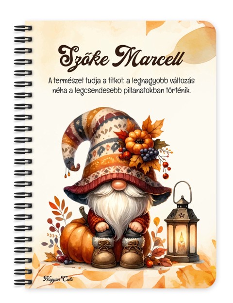 Személyre szabható - Cuki őszi manó mintás füzet mintás Füzet | Egyedi Ajándék Nőknek & Személyes Napló | nagyoncuki.hu Képzeld el azt a mosolyt a megajándékozott arcán, amikor egy olyan füzetet tart a kezében, ami a legféltettebb gondolatait, álmait vagy fontos jegyzeteit őrzi. Ez a különleges, személyre szabható, egyedi tervezésű őszi manó mintás füzet a könnyed elegancia, a játékos cukiság és a nyugodt, elmélyült pillanatok bájos megtestesítője. Egy apró, szeretetteljes gesztus, amely a mindennapokat is fénnyel tölti meg, és minden lapon új ötletekre sarkall. Kiváló ajándék ötlet nőknek és mindenkinek, aki értékeli a személyes és lélekemelő meglepetéseket. Akár naplóként, jegyzetfüzetként, receptkönyvként vagy ötletfüzetként használod, ez a manós mintás füzet tökéletes társ lesz minden kreatív és meditatív pillanatban. A "Cuki manók" kollekció ezen darabját is mi magunk, a nagyoncuki.hu csapata terveztük, így biztos lehetsz benne, hogy egy igazán egyedi és különleges manós ajándék darabbal leped meg szeretteidet vagy magadat. :) Miért válaszd ezt a cuki őszi manó mintás füzetet? Teljesen Személyre Szabható: Tedd igazán egyedivé! A borítóra nemcsak nevet kérhetsz, de a mintán szereplő alap idézetet is lecserélheted egy saját, személyes és kedves üzenetre. Stílusos és Témába Vágó Dizájn: A cuki áfonyás manó figura garantáltan mosolyt csal mindenki arcára, csak a kezében tartja. Praktikus és Minőségi: A füzet két méretben (A5 és A6) elérhető, így kiválaszthatod a neked legmegfelelőbbet. A strapabíró spirálkötés és a 60 minőségi, vonalas lap (120 oldal) gondoskodik a kényelmes használatról. Extra Meglepetés: Minden füzethez egy ajándék post-it szett is jár, hogy a legfontosabb jegyzetek mindig kéznél legyenek. Tökéletes ajándék nőknek és manórajongóknak: Legyen szó születésnapról, névnapról, karácsonyról, vagy csak egy kedves gesztusról, ez a saját névvel és idézettel kérhető áfonya manós füzet telitalálat. Kinek ideális ajándék ez a cuki áfonyás manó mintás füzet? Nőknek és lányoknak: Mindenkinek, aki a manók, a mesék és a bájos, tündéri stílus rajongója. Az őszi hangulat kedvelőinek: Akik értékelik a meghitt, meleg színeket és a természet inspirálta dizájnokat. A Cuki Manók kollekció gyűjtőinek: Akik szeretnék bővíteni a bájos figurák gyűjteményét, és szeretik az összhangot. Aki szereti a személyre szabott ajándékokat: Ha egyedi, névre szóló füzetet és a mesékhez kapcsolódó ajándékot keresel. Hol használhatod a Cuki áfonya mintás füzetet? Otthon: Naplózáshoz, receptek leírásához, ötleteléshez, vagy akár csak bevásárlólistákhoz. Tökéletes az éjjeliszekrényre, az íróasztalra vagy a kanapé mellé. Irodában/Suliban: Jegyzeteléshez, határidők rögzítéséhez, vagy inspiráló segítőként a kreatív munkához. Dobd fel a mindennapi feladatokat. Ajándékként: Önmagában is egy csodás meglepetés, de akár egy manós vagy őszi témájú ajándékcsomag részeként is tökéletes választás egy manós bögrével vagy poháralátéttel kiegészítve. Termékjellemzők: Méretek: Választható A5 (kb. 13,5 cm x 21 cm) vagy A6 (kb. 10,5 cm x 14,5 cm) Borító: Személyre szabható névvel és/vagy egyedi idézettel, matt felülettel Belső: Kb. 60 csíkos lap (120 oldal), tetején "memo" és "Subject" segédlettel Kötés: Praktikus és tartós fekete fémspirál Extra: Ajándék post-it szett a füzet elején Egyedi felirattal is kérhető: Ne felejtsd el megadni a kért nevet és/vagy az egyedi idézetet. Rendeld meg most ezt a teljesen személyre szabható, egyedi áfonya manós füzetet, és vigyél egy kis extra őszi örömet és inspirációt a mindennapokba... mert mindenkinek jár egy kis cukiság! Ha Ha elvarázsolt a cuki manók világa, és tetszenek a személyre szabható ajándék ötleteink, nézd meg a többi aranyos manós dizájnnal készült termékünket is a "Cuki Manó" Kollekcióban a nagyoncuki.hu-n! Fedezz fel még több egyedi ajándékot és más, vidám témájú csodát!
