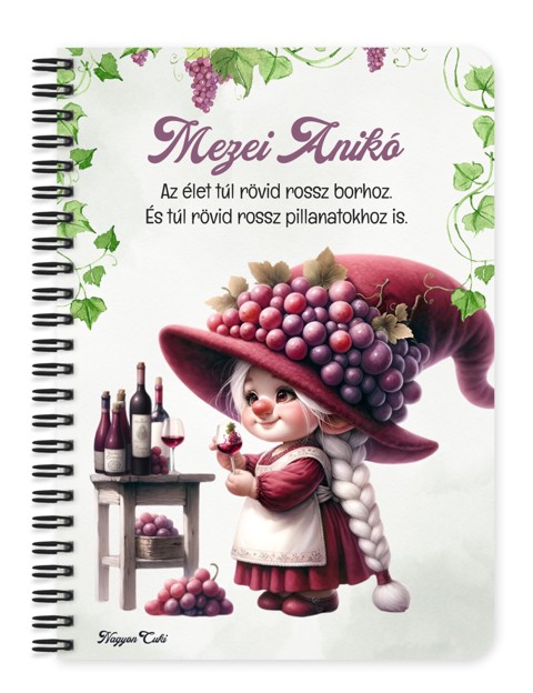 Személyre szabható - A legjobb borász manólány pohárral mintás füzet mintás Füzet | Egyedi Ajándék Borászoknak & Borrajongóknak & Személyes Napló | nagyoncuki.hu Képzeld el, ahogy egy pohár finom bor mellett leülsz, hogy feljegyezd a gondolataidat, és a füzet borítójáról egy bölcs kis borász manó kacsint rád. Ő a telt ízek, a gondos munka és a baráti koccintások apró kis őrzője. Ez a személyre szabott füzet a tökéletes tisztelgés a borkészítés nemes mestersége és a borfogyasztás kultúrája előtt. Akár naplóként, jegyzetfüzetként, vagy ötletfüzetként használod, ez a manós mintás füzet tökéletes társ lesz minden pillanatban, amikor csak akarod. A "Cuki manók" kollekció ezen darabját is mi magunk, a nagyoncuki.hu csapata terveztük, így biztos lehetsz benne, hogy egy igazán egyedi és különleges manós ajándék darabbal leped meg szeretteidet vagy magadat. :) Miért válaszd ezt a cuki borász manó mintás füzetet? Teljesen Személyre Szabható: Tedd igazán egyedivé! A borítóra nemcsak nevet kérhetsz, de a mintán szereplő alap idézetet is lecserélheted egy saját, személyes és kedves üzenetre. Stílusos és Témába Vágó Dizájn: A cuki borász manó figura garantáltan mosolyt csal mindenki arcára, csak a kezében tartja. Praktikus és Minőségi: A füzet két méretben (A5 és A6) elérhető, így kiválaszthatod a neked legmegfelelőbbet. A strapabíró spirálkötés és a 60 minőségi, vonalas lap (120 oldal) gondoskodik a kényelmes használatról. Extra Meglepetés: Minden füzethez egy ajándék post-it szett is jár, hogy a legfontosabb jegyzetek mindig kéznél legyenek. Tökéletes Ajándék Borászoknak: Ideális ajándék születésnapra, névnapra, karácsonyra, apák napjára, vagy egy sikeres szüret megünneplésére. Kinek ideális ajándék ez a cuki borász manó mintás füzet? Minden borásznak, borrajongónak és borszakértőnek, aki komolyan veszi ezt a szép hobbit vagy hivatást. Azoknak, akiknek a borospince a szentélyük. Sommelier-knek, borkereskedőknek, akiknek a munkájuk a szenvedélyük. Házigazdáknak, egyedi ajándékként egy vacsorameghívásra, egy üveg bor mellé A Cuki Manók kollekció gyűjtőinek: Akik szeretnék bővíteni a bájos figurák gyűjteményét, és szeretik az összhangot. Hol használhatod a Cuki borász manó mintás füzetet? Otthon: Naplózáshoz, tervekhez, ötleteléshez, vagy akár csak bevásárlólistákhoz. Tökéletes az éjjeliszekrényre, az íróasztalra vagy a kanapé mellé. Irodában/Suliban: Jegyzeteléshez, határidők rögzítéséhez, vagy inspiráló segítőként a kreatív munkához. Dobd fel a mindennapi feladatokat. Ajándékként: Önmagában is egy csodás meglepetés, de akár egy manós vagy boros témájú ajándékcsomag részeként is tökéletes választás egy manós bögrével vagy poháralátéttel kiegészítve. Termékjellemzők: Méretek: Választható A5 (kb. 13,5 cm x 21 cm) vagy A6 (kb. 10,5 cm x 14,5 cm) Borító: Személyre szabható névvel és/vagy egyedi idézettel, matt felülettel Belső: Kb. 60 csíkos lap (120 oldal), tetején "memo" és "Subject" segédlettel Kötés: Praktikus és tartós fekete fémspirál Extra: Ajándék post-it szett a füzet elején Egyedi felirattal is kérhető: Ne felejtsd el megadni a kért nevet és/vagy az egyedi idézetet. Rendeld meg most ezt a teljesen személyre szabható, egyedi borász manós füzetet, és és ajándékozz egy igazán stílusos, szívhez szóló meglepetést!... mert mindenkinek jár egy kis cukiság! Ha Ha elvarázsolt a cuki manók világa, és tetszenek a személyre szabható ajándék ötleteink, nézd meg a többi aranyos manós dizájnnal készült termékünket is a "Cuki Manó" Kollekcióban a nagyoncuki.hu-n! Fedezz fel még több egyedi ajándékot és más, vidám témájú csodát!
