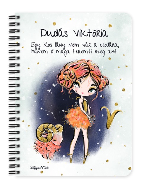 Személyre szabható - Vörös hajú Csini Kos lány mintás Zodiákus Füzet | Egyedi Horoszkópos Ajándék & Névre szóló Jegyzetfüzet | nagyoncuki.hu Tudod, mi teszi igazán különlegessé a Kos hölgyeket? Az a megállíthatatlan lendület, a bátorság és az a lelkesedés, amivel minden új projektbe belefognak. Ők a zodiákus úttörői, akik nem csak álmodoznak a céljaikról, de le is írják és meg is valósítják azokat. Ez a „csili-vili” Kos lányos füzet pont ezt a vibráló energiát hozza el az asztalodra minden reggel. Ez a füzet nem csupán papír és spirál – ő egy vidám társ a mindennapokhoz, egy motivációs lökés a sűrű teendők közepette, és egy igazán szívhez szóló, egyedi ajándék. Amikor a kezedbe veszed, és meglátod rajta a saját karakteredet és nevedet, tudni fogod: ma is bármire képes vagy! Ezt a bájos dizájnt mi magunk, a nagyoncuki.hu csapata terveztük, nagy szeretettel, így biztos lehetsz benne, hogy egy igazán különleges, magyar dizájnnal készült darabbal leped meg szeretteidet vagy magadat! :)