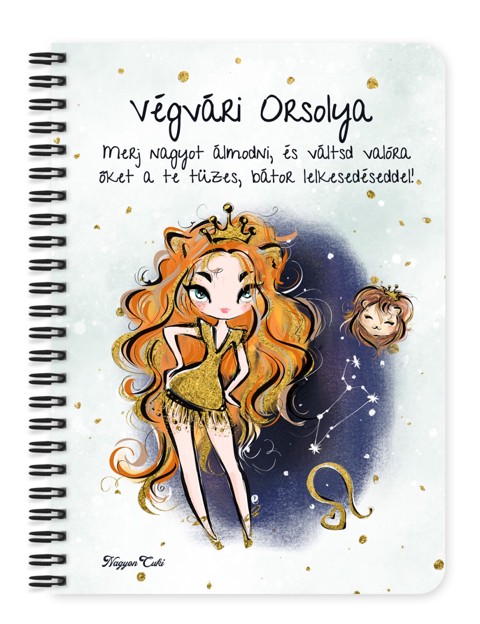 Személyre szabható - Vörös hajú Csini Oroszlán lány mintás Zodiákus Füzet | Egyedi Horoszkópos Ajándék & Névre szóló Jegyzetfüzet | nagyoncuki.hu Tudod, mi teszi igazán különlegessé a Oroszlán hölgyeket? Ahogy belépnek egy szobába, megtelik a tér fénnyel és melegséggel. Méltóságteljesek, nagylelkűek és elképesztő belső erővel rendelkeznek – ők a zodiákus természetes vezetői, akik imádják az életet és a szépséget. Ez a „csili-vili” Oroszlán lányos füzet ezt a fenséges energiát és stílust hozza el a mindennapjaidba. Ez a füzet nem csupán papír és spirál – ő egy ragyogó társ a nagy célok eléréséhez, egy motivációs lökés a reggeli kávé mellé, és egy igazán szívhez szóló, egyedi ajándék. Amikor a kezedbe veszed, és meglátod rajta a saját karakteredet és nevedet, tudni fogod: ma is te vagy a történeted főszereplője! Ezt a bájos dizájnt mi magunk, a nagyoncuki.hu csapata terveztük, nagy szeretettel, így biztos lehetsz benne, hogy egy igazán különleges, magyar dizájnnal készült darabbal leped meg szeretteidet vagy magadat! :)
