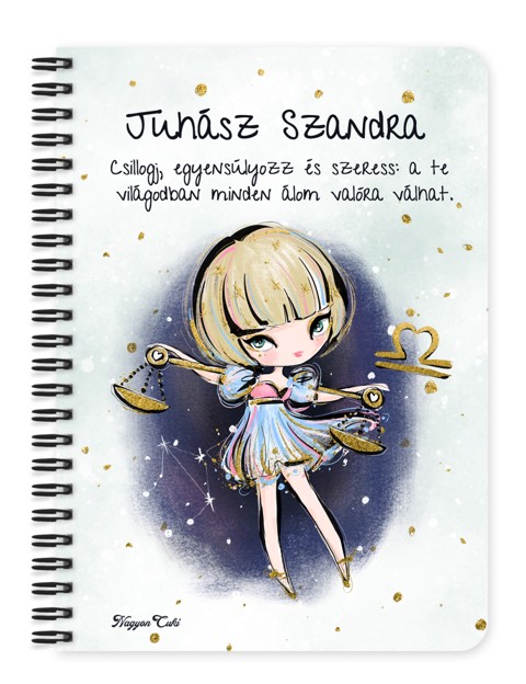Személyre szabható - Szőke hajú Csini Mérleg lány mintás Zodiákus Füzet | Egyedi Horoszkópos Ajándék & Névre szóló Jegyzetfüzet | nagyoncuki.hu Tudod, mi teszi igazán különlegessé a Mérleg hölgyeket? Az a veleszületett báj, az esztétika iránti rajongás és az a törekvés a harmóniára, amivel megszépítik a környezetüket. Ők a stílus nagykövetei, akik ösztönösen érzik az arányokat, és mindenben meglátják a művészetet. Ez a „csili-vili” Mérleg lányos füzet ezt a finom eleganciát hozza el az asztalodra minden nap. Ez a füzet nem csupán papír és spirál – ő egy harmóniát sugárzó pillanat a reggeli kávé mellé, egy stílusos hely az ötleteidnek, és egy igazán szívhez szóló, egyedi ajándék. Amikor a kezedbe veszed, és meglátod rajta a saját karakteredet és nevedet, tudni fogod: az egyensúly és a szépség belőled fakad! Ezt a bájos dizájnt mi magunk, a nagyoncuki.hu csapata terveztük, nagy szeretettel, így biztos lehetsz benne, hogy egy igazán különleges, magyar dizájnnal készült darabbal leped meg szeretteidet vagy magadat! :)