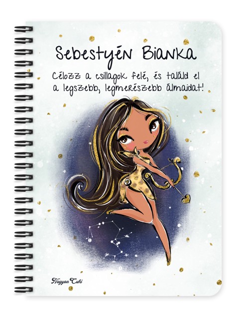 Személyre szabható - Barna hajú Csini Nyilas lány mintás Zodiákus Füzet | Egyedi Horoszkópos Ajándék & Névre szóló Jegyzetfüzet | nagyoncuki.hu Tudod, mi teszi igazán különlegessé a Nyilas hölgyeket? Az az örök optimizmus, a szabadságszeretet és az a határtalan kalandvágy, amivel minden napot új lehetőségként élnek meg. Ők az igazi felfedezők, akiknek a mosolya minden sötét napot beragyog. Ez a „csili-vili” Nyilas lányos füzet ezt a pezsgő energiát és stílust hozza el az asztalodra minden nap. Ez a füzet nem csupán papír és spirál – ő egy vidám társ a reggeli kávé mellé, egy inspiráló hely a legmerészebb terveidnek, és egy igazán szívhez szóló, egyedi ajándék. Amikor a kezedbe veszed, és meglátod rajta a saját karakteredet és nevedet, tudni fogod: a világ csak rád vár! Ezt a bájos dizájnt mi magunk, a nagyoncuki.hu csapata terveztük, nagy szeretettel, így biztos lehetsz benne, hogy egy igazán különleges, magyar dizájnnal készült darabbal leped meg szeretteidet vagy magadat! :)