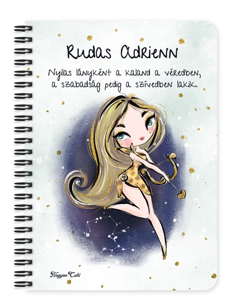 Személyre szabható - Szőke hajú Csini Nyilas lány mintás Zodiákus Füzet | Egyedi Horoszkópos Ajándék & Névre szóló Jegyzetfüzet | nagyoncuki.hu Tudod, mi teszi igazán különlegessé a Nyilas hölgyeket? Az az örök optimizmus, a szabadságszeretet és az a határtalan kalandvágy, amivel minden napot új lehetőségként élnek meg. Ők az igazi felfedezők, akiknek a mosolya minden sötét napot beragyog. Ez a „csili-vili” Nyilas lányos füzet ezt a pezsgő energiát és stílust hozza el az asztalodra minden nap. Ez a füzet nem csupán papír és spirál – ő egy vidám társ a reggeli kávé mellé, egy inspiráló hely a legmerészebb terveidnek, és egy igazán szívhez szóló, egyedi ajándék. Amikor a kezedbe veszed, és meglátod rajta a saját karakteredet és nevedet, tudni fogod: a világ csak rád vár! Ezt a bájos dizájnt mi magunk, a nagyoncuki.hu csapata terveztük, nagy szeretettel, így biztos lehetsz benne, hogy egy igazán különleges, magyar dizájnnal készült darabbal leped meg szeretteidet vagy magadat! :)