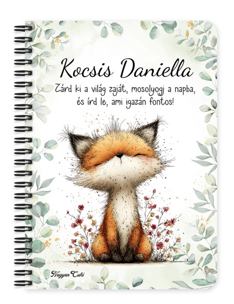Ébreszd fel a kreativitásod egy csipetnyi okos bájjal! A névvel és idézettel kérhető Cuki Tavaszi Róka füzet a kíváncsiság és a tavaszi erdő vibráló színeinek hordozója. Egy különleges, névre szóló társ a legzseniálisabb ötletekhez, vázlatokhoz és tervekhez.