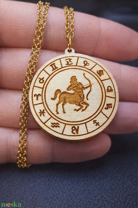 ékszer, nyaklánc, medálos nyaklánc, nyilas, horoszkóp, gravírozott, fa, zodiák, csillagjegy, ajándék, születésnap, női, férfi, kézműves, egyedi, misztikus, spirituális, szerencsehozó, anyák, napi