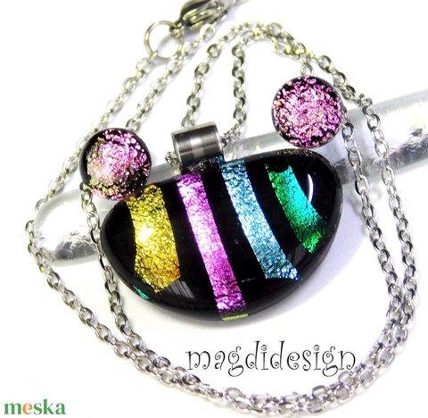 NEMESACÉL! Színes dichroic csikok üvegékszer szett, nyaklánc, stiftes fülbevaló