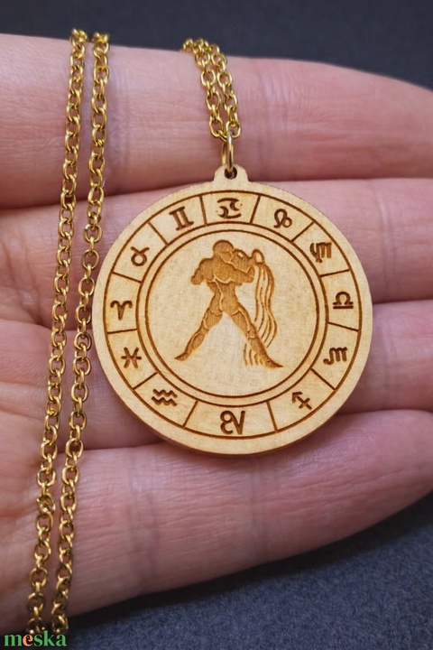 ékszer, nyaklánc, medálos nyaklánc, vízöntő, horoszkóp, gravírozott, zodiák, csillagjegy, ajándék, születésnap, női, férfi, kézműves, egyedi, misztikus, spirituális, szerencsehozó, anyák, napi, fa