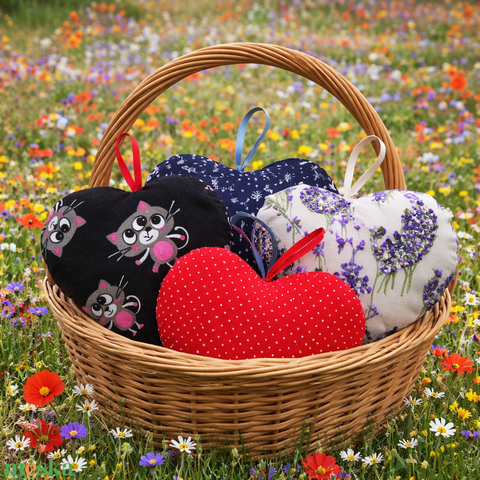 Szivecske alakú kispárna tönkölypelyva és levendula töltettel-Több minta!