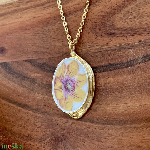 Aranyozott medál - mentett francia porcelán darabok - virágos medál vagy nyaklánc