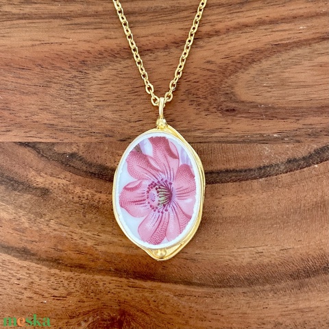 Aranyozott medál - mentett francia porcelán darabok - virágos medál vagy nyaklánc