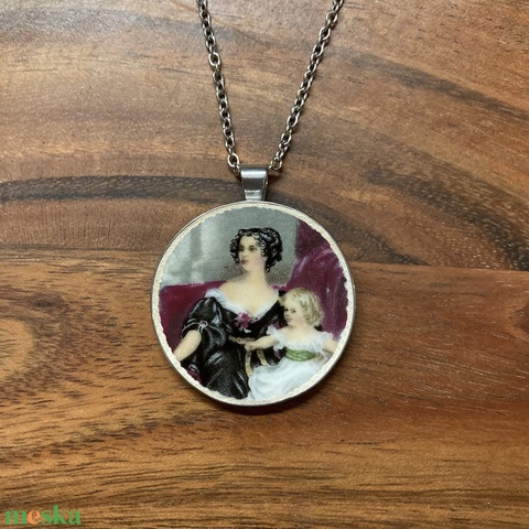 Mentett porcelán darabok, anya-lánya ölelés nagy medálos nyaklánc - nemesacél