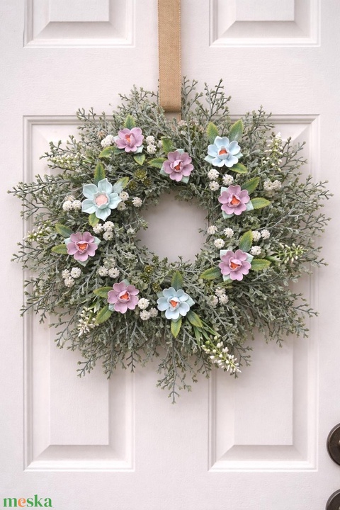 Koszorú kerámia virágokkal