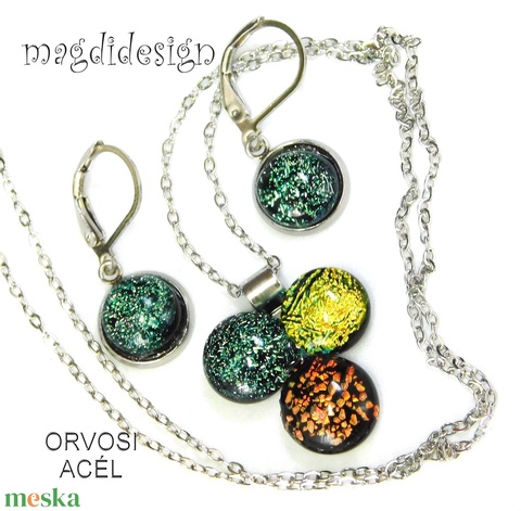 Aranyló dichroic bogyós színtrió üvegékszer szett nyaklánc kapcsos fülbevaló