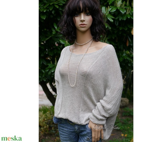 OPALMOON / luxy jak - exkluzív kézzel kötött finom selyem pulóver / ezüstszürke
