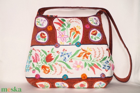 Színes, kézzel hímzett virágos hímzett textíliából készült, nagy méretű egyedi női pakolós cipzáros válltáska