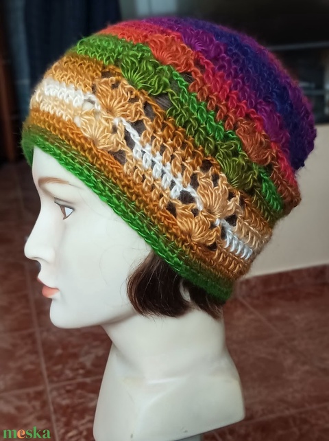 Sokszínű horgolt sapka kisebb női/leány méretben