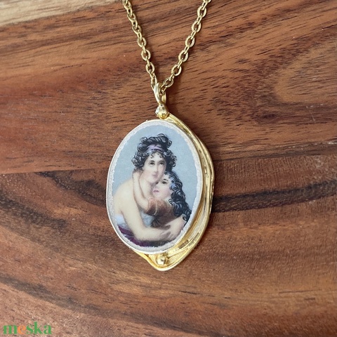 Aranyozott medál - mentett porcelán darabok, anya-lánya medál vagy nyaklánc