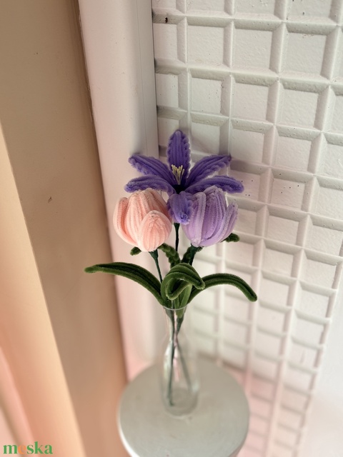 Ezek a különleges, kézzel készített virágok zseníliadrótból készülnek, aprólékos munkával, szeretettel megalkotva. Nem hervadnak el, így hosszú távon is szép díszei lehetnek otthonodnak.