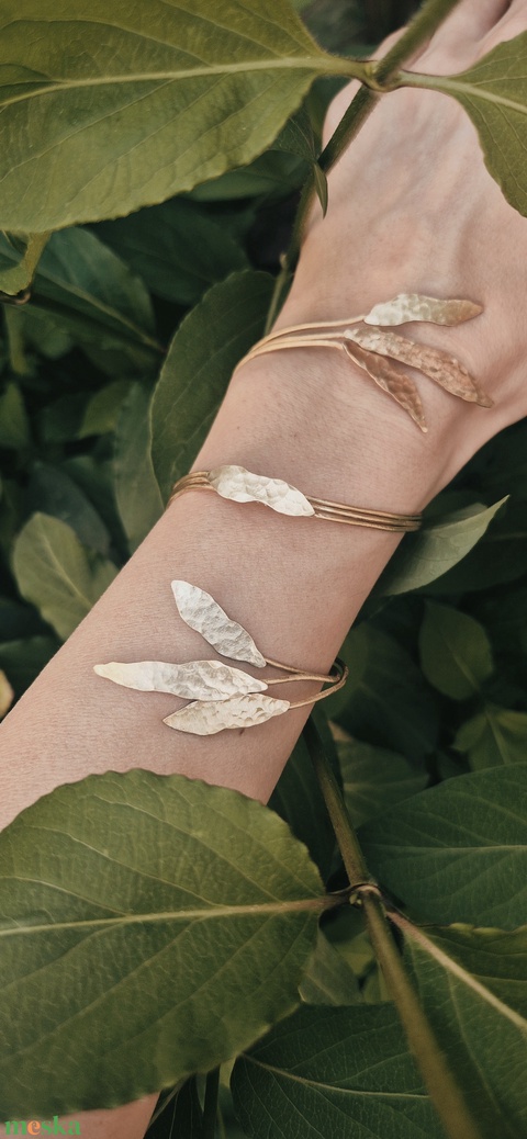 Tavaszi levelek sárgaréz karkötő, virágos karkötő