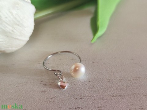 Édesvízi Gyöngy -Ezüst Szív – Állítható Nemesacél Gyűrű