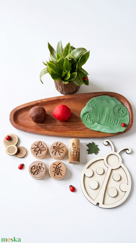 1 db kézműves Katica fa tálca: a doboz sztárja! A mélyedések tökéletesek a gyurma kitöltésére.
