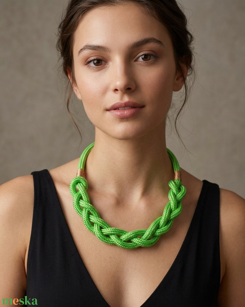 Kézműves fonott hajókötél nyaklánc – almazöld és arany színekben