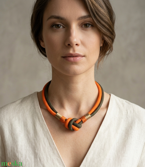 Kézműves kötél nyaklánc – narancssárga és khaki