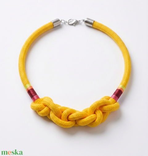 Kézműves fonott hajókötél nyaklánc – élénksárga, színes díszítéssel