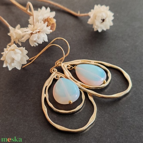 - Anyag/Összetevő nemesacél fülbevaló alap, arany színű ékszerelem, opalit csepp