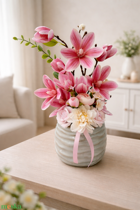 Pink magnóliás asztaldísz