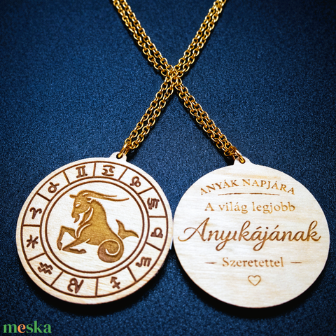 ékszer, nyaklánc, medálos nyaklánc, horoszkóp, bak, gravírozott, fa, zodiák, csillagjegy, ajándék, születésnap, női, férfi, kézműves, egyedi, misztikus, spirituális, szerencsehozó, anyák, napi