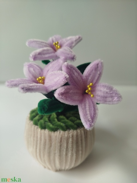Kézzel készült lila liliom kaspó – örök virág, kedves ajándék