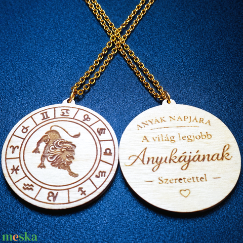 ékszer, nyaklánc, medálos nyaklánc, horoszkóp, oroszlán, gravírozott, fa, zodiák, csillagjegy, ajándék, születésnap, női, férfi, kézműves, egyedi, misztikus, spirituális, szerencsehozó, anyák, napi
