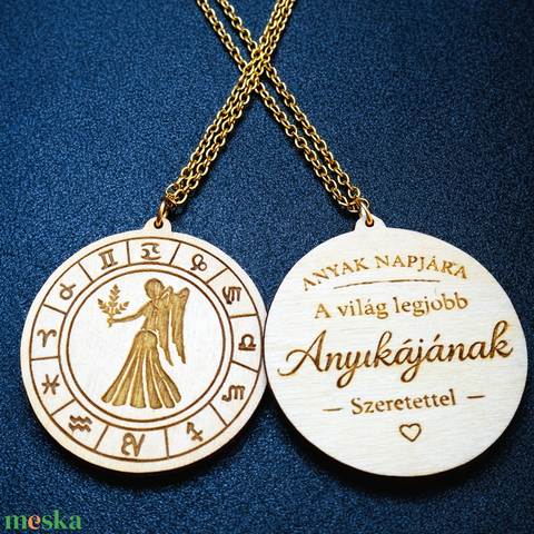 ékszer, nyaklánc, medálos nyaklánc, horoszkóp, szűz, gravírozott, fa, zodiák, csillagjegy, ajándék, születésnap, női, férfi, szerencsehozó, anyák, napi, kézműves, egyedi, misztikus, spirituális