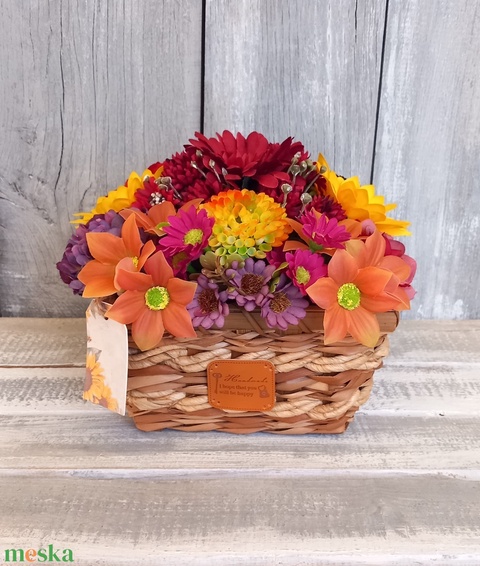 - Anyag/Összetevő fonottvirágtartó, selyemvirágok, kártya, tűzőhab
