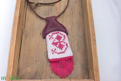 Textilmentő nyaklánc régi hímzett könyvjelzőből