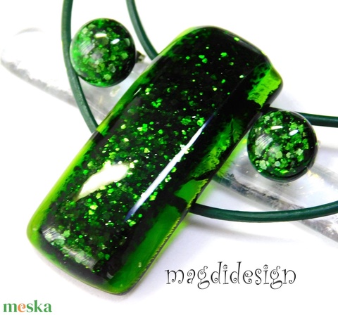 Eredeti zöld aventurin üvegékszer szett, nyaklánc, stiftes fülbevaló