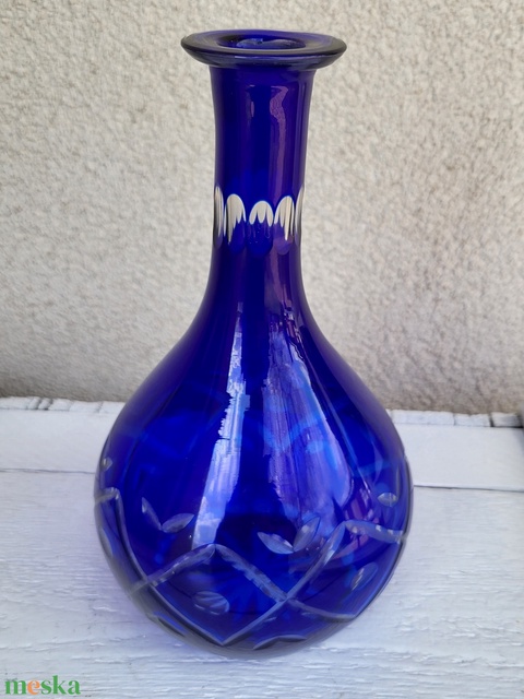 Vintage kobaltkék csiszolt üveg dekantáló palack