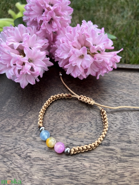 Bézs fonott karkötő pasztell színű ásvány gyöngyökkel (állítható méret)