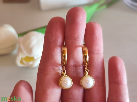 Kézműves Édesvízi Gyöngy Fülbevaló Aranyfényű Nemesacélban