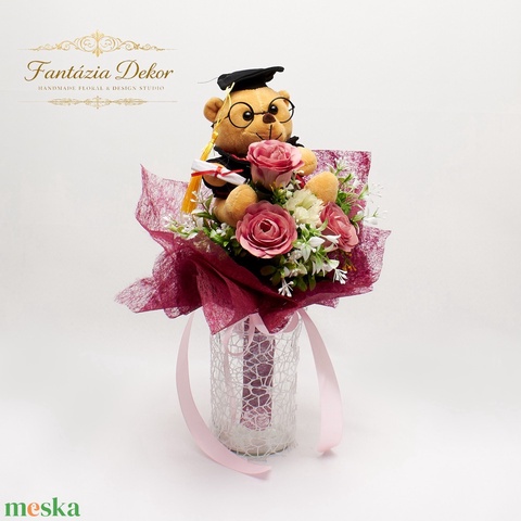 🎓 Ballagó macis rózsás virágcsokor – elegáns és kedves ajándék 🎓