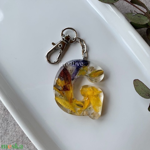 Esküvői csokor megőrzése – egyedi betű kulcstartó valódi virágokkal, személyes emlék