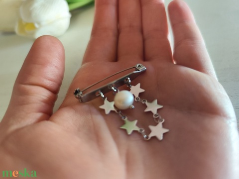 Csillagos Ragyogás – Nemesacél Kitűző Természetes Gyönggyel