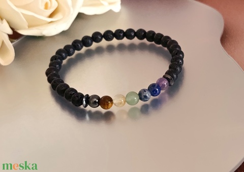 - Anyag/Összetevő gumis damil, lávakő, ametiszt, lapis lazuli, szodalit, aventurin, citrin, tigrisszem, hematit